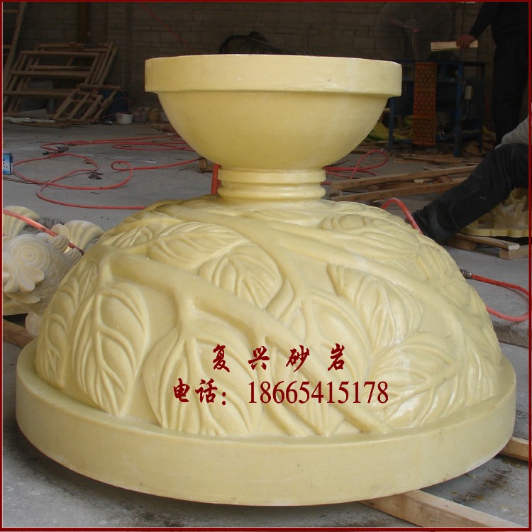 复兴艺术砂岩花钵圆雕浮雕小区广场专用园林景观雕塑藤叶花盆喷。热门设计联盟服务商