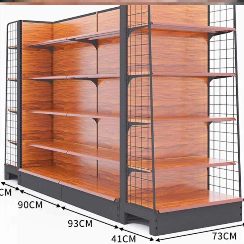 超市货架展示架便利店零食商品水果店展柜钢木靠墙文具商店单面热门设计联盟服务商