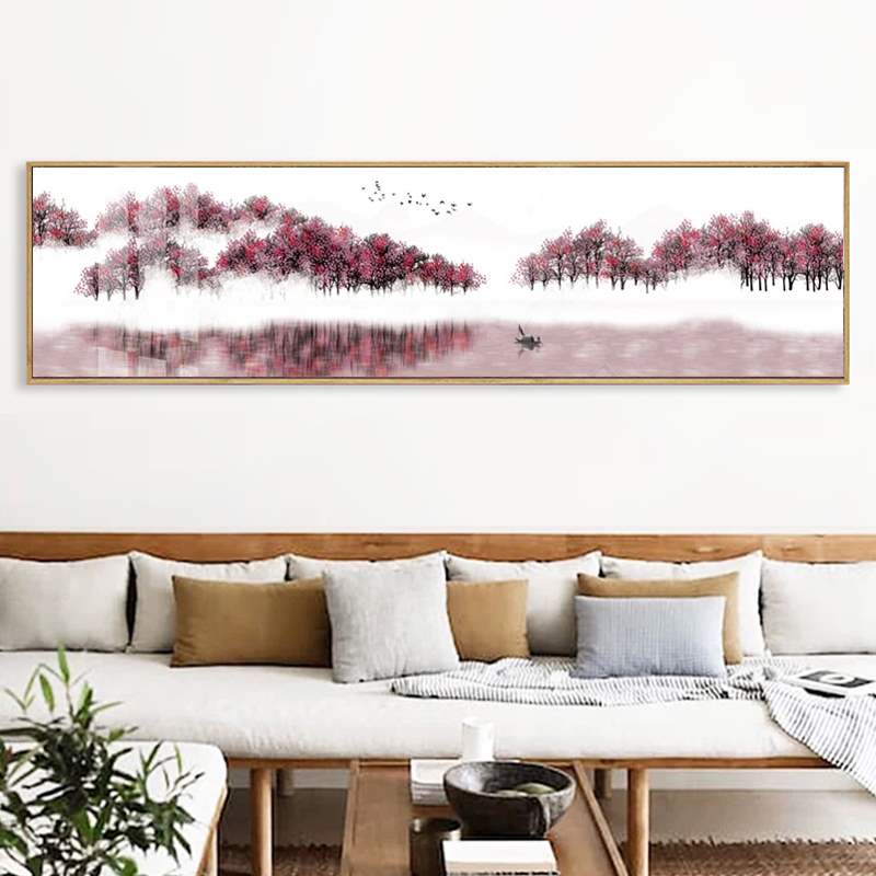 山水壁画卧室新中式客厅装饰画书房挂画茶室横幅禅意水墨画床头画热门设计联盟服务商